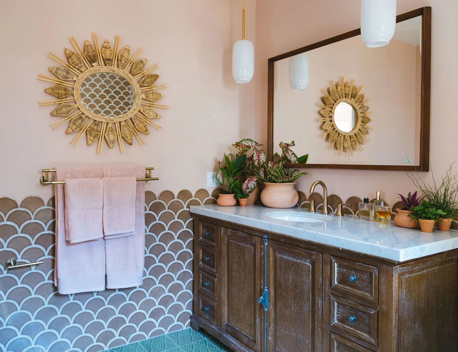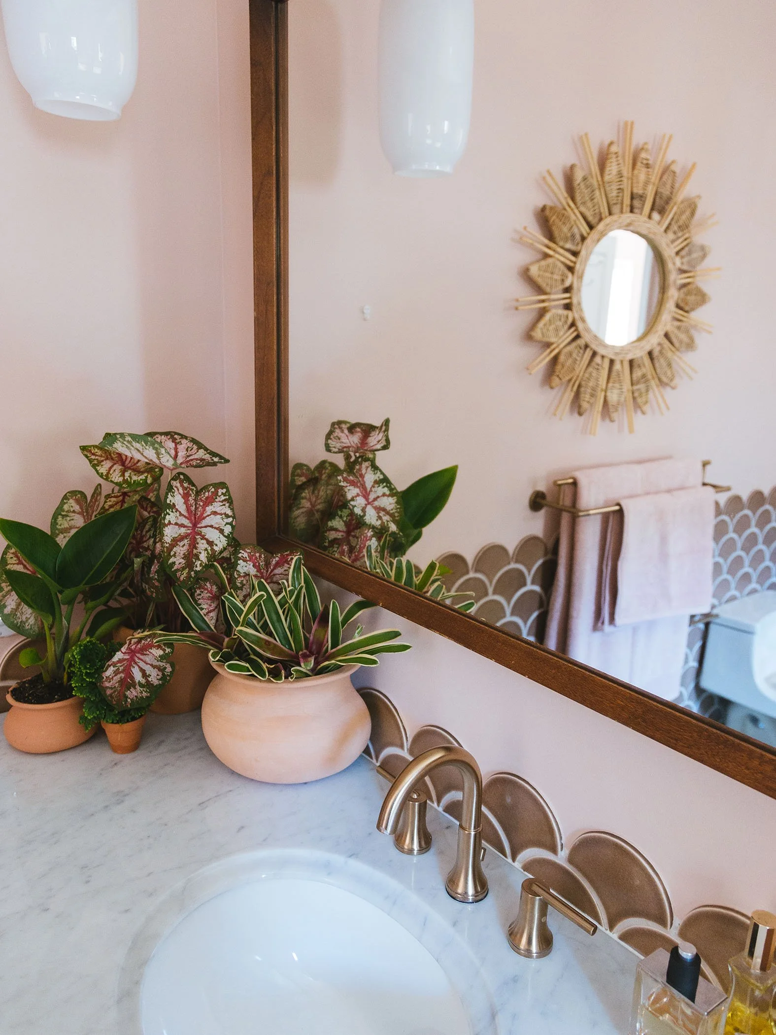 The terracotta was a design choice made by Justina and Faith to balance out and add warmth to the cool blue-green tones and to give the home a bit of Spanish-Mediterranean flair.”